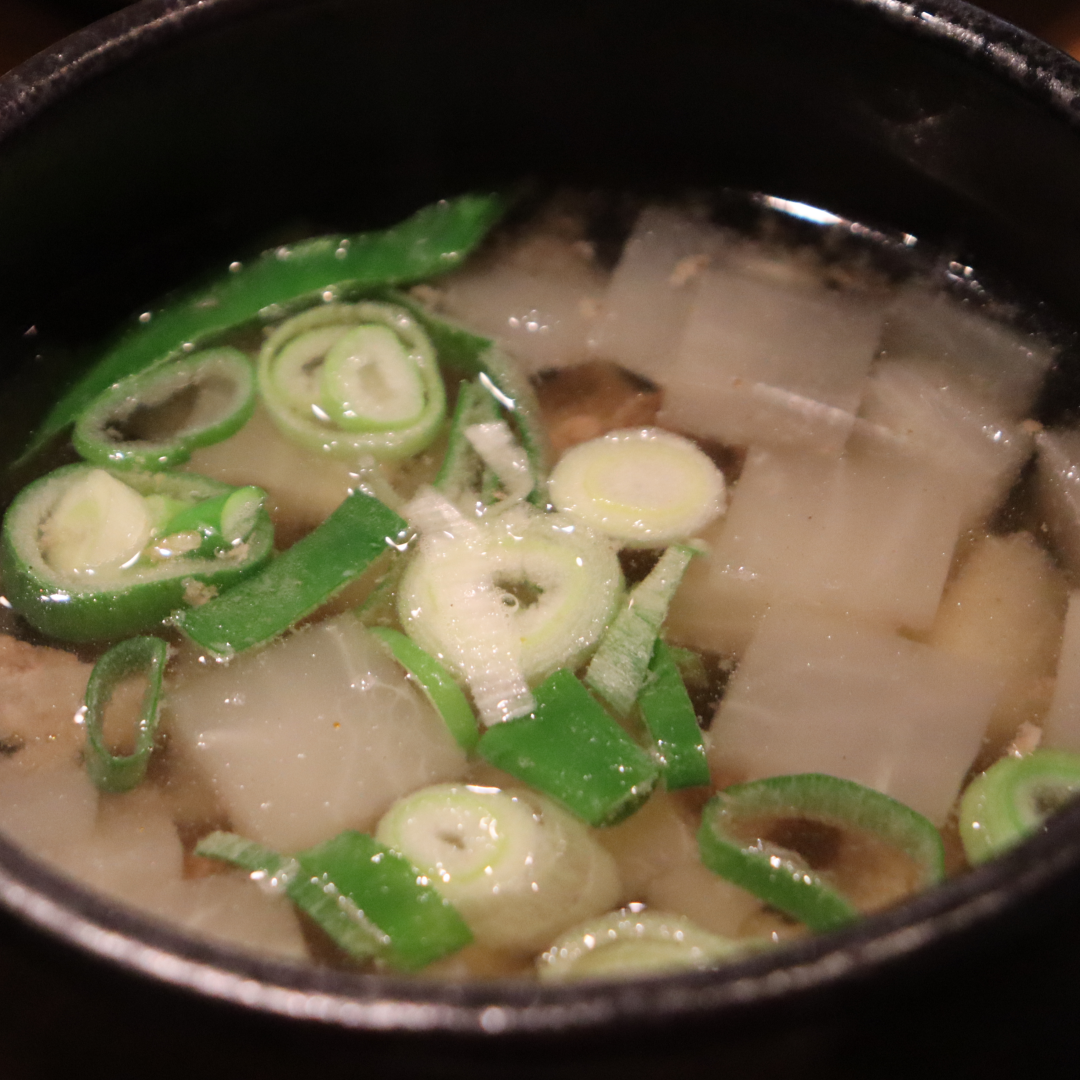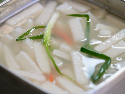 - 가장 기본은 밥 한 숟갈에 무 한 조각, 국물 한 숟갈입니다.