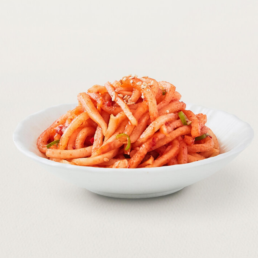 - 무에서 수분이 빠져나오면서 숨이 죽어 아삭하면서도 국물이 잘 배게 됩니다.