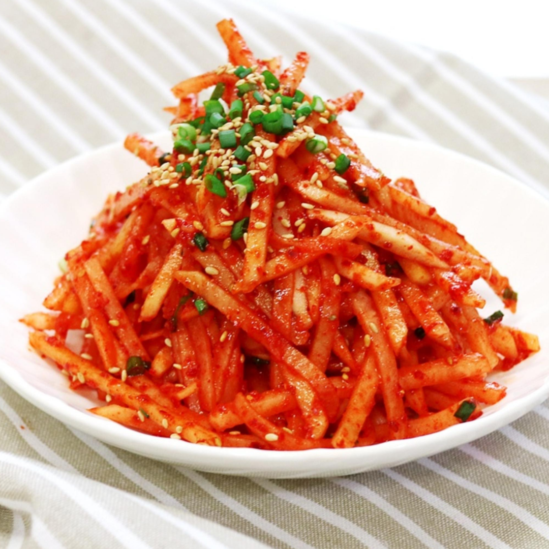 - 새우젓 + 다진 마늘 + 고춧가루 + 매실액 약간